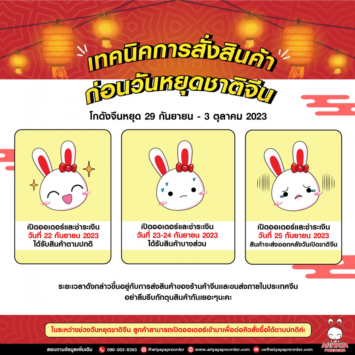 เปิดออเดอร์และชำระเงิน วันที่ 25 กันยายน 2023 สินค้าจะส่งออกหลังวันหยุดชาติจีน