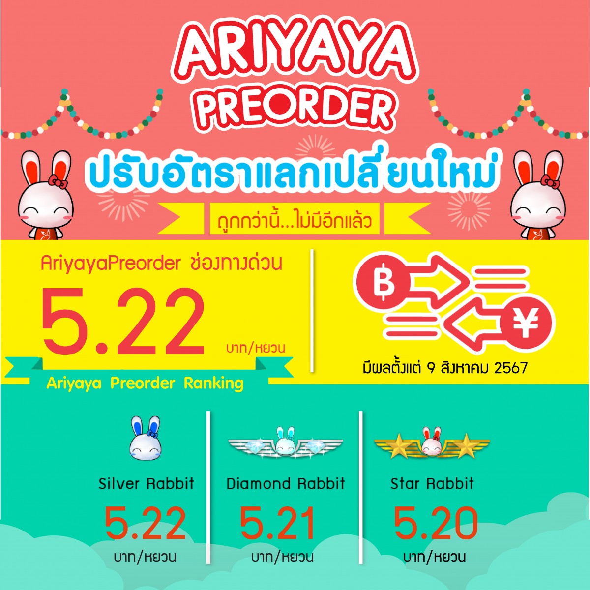 ARIYAYAPREORDER ปรับเรทอัตราแลกเปลี่ยนใหม่