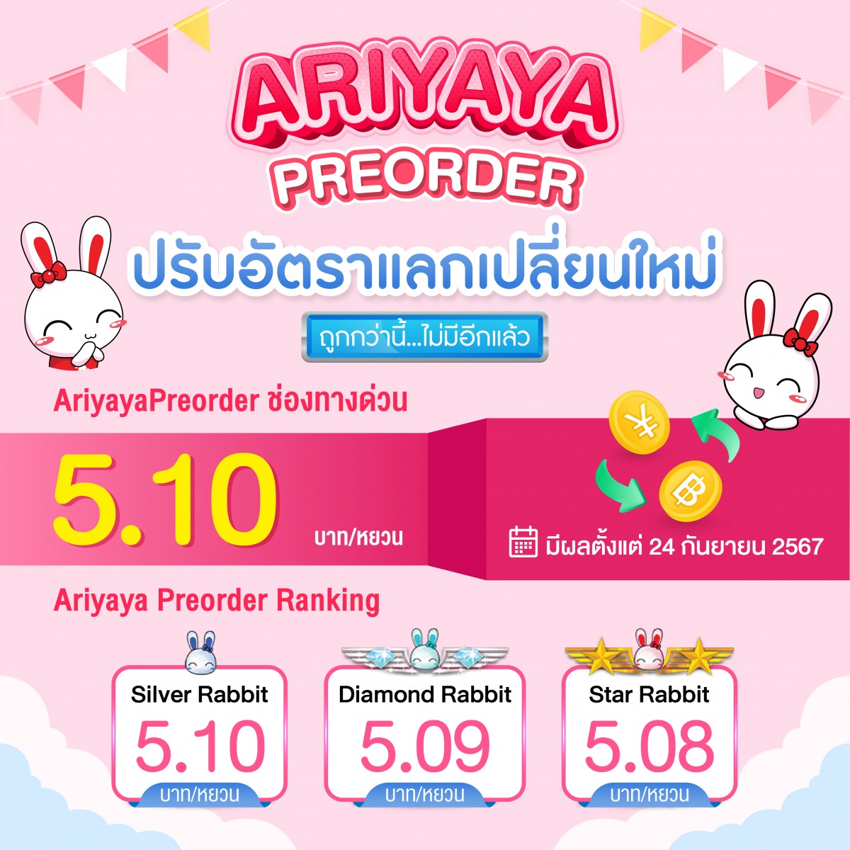 ARIYAYAPREORDER ปรับเรทอัตราแลกเปลี่ยนใหม่