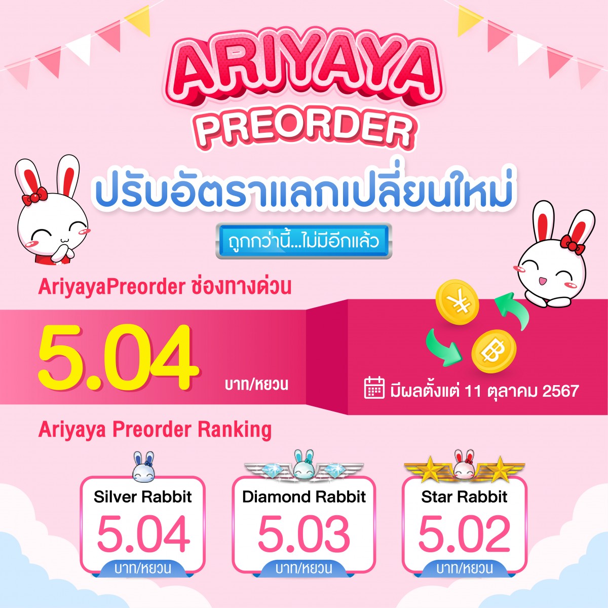 ARIYAYAPREORDER ปรับเรทอัตราแลกเปลี่ยนใหม่