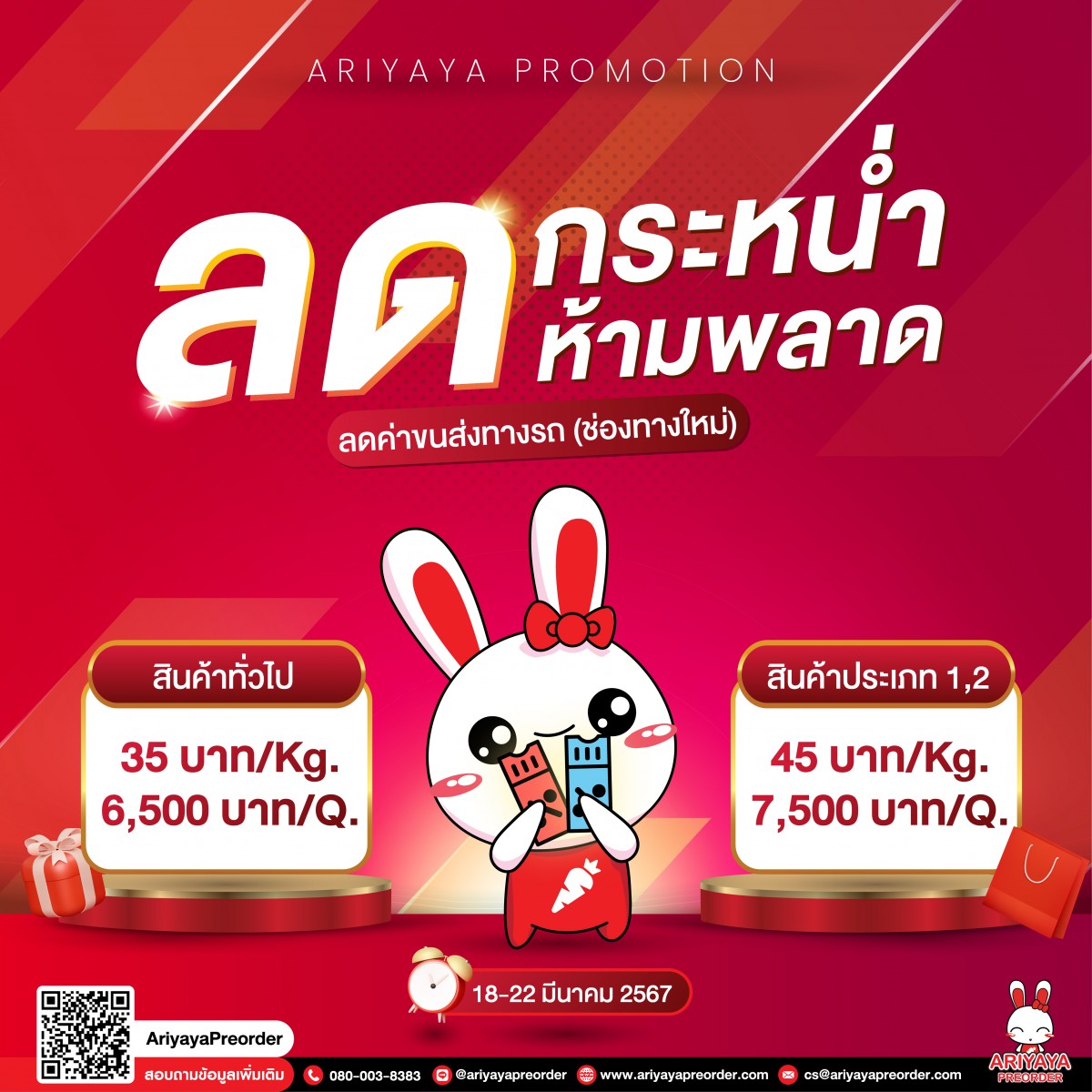 1.สิทธิพิเศษสำหรับลูกค้าที่เปิดออเดอร์และชำระเงินในช่องทางทั่วไป(กิโล-คิว) และช่องทางด่วนของการขนส่งสินค้าทางรถ (ช่องทางใหม่) ที่คิดค่าใช้จ่ายตามน้ำหนักจริง
