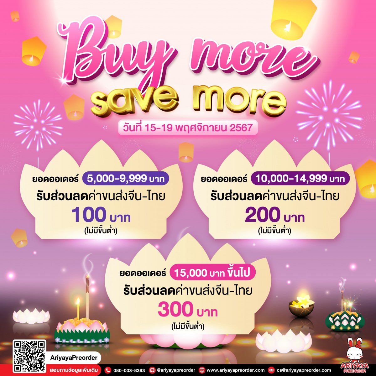 2) ลูกค้าต้องระบุในช่อง*หมายเหตุ*ในออเดอร์ว่า "buy more save more"
