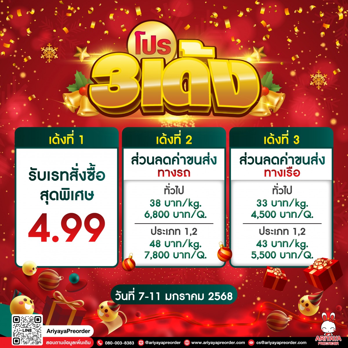 2.1 คุณลูกค้าต้องทำการเปิดออเดอร์เข้ามาและชำระเงินภายในวันที่ 7-11 มกราคม 2568