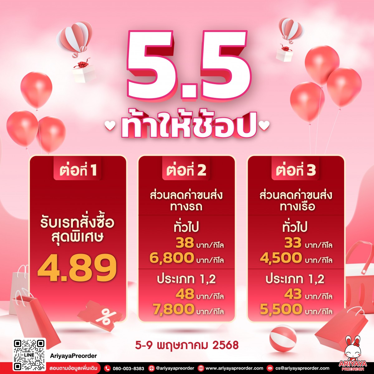 2.1 คุณลูกค้าต้องทำการเปิดออเดอร์เข้ามาและชำระเงินภายในวันที่ 5-9 พฤษภาคม 2568